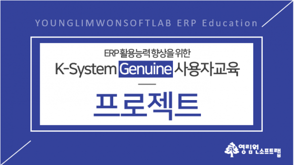 본 과정은 영림원 맞춤형 ERP K-System Genuine(제뉴인)을 사용하는 고객사 중 프로젝트 관리 업무를 담당하는 분들께 도움을 드리기 위해 제공되는 교육으로써 실습을 통하여 ERP 활용 능력을 습득할 수 있는 방식으로 진행됩니다.