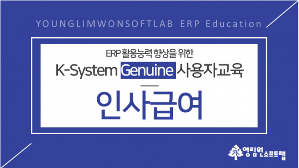 본 과정은 영림원 맞춤형 ERP K-System Genuine(제뉴인)을 사용하는 고객사 중 인사,급여 관련 업무를 담당하는 분들께 도움을 드리기 위해 제공되는 교육으로써 실습을 통하여 ERP 활용 능력을 습득할 수 있는 방식으로 진행됩니다.